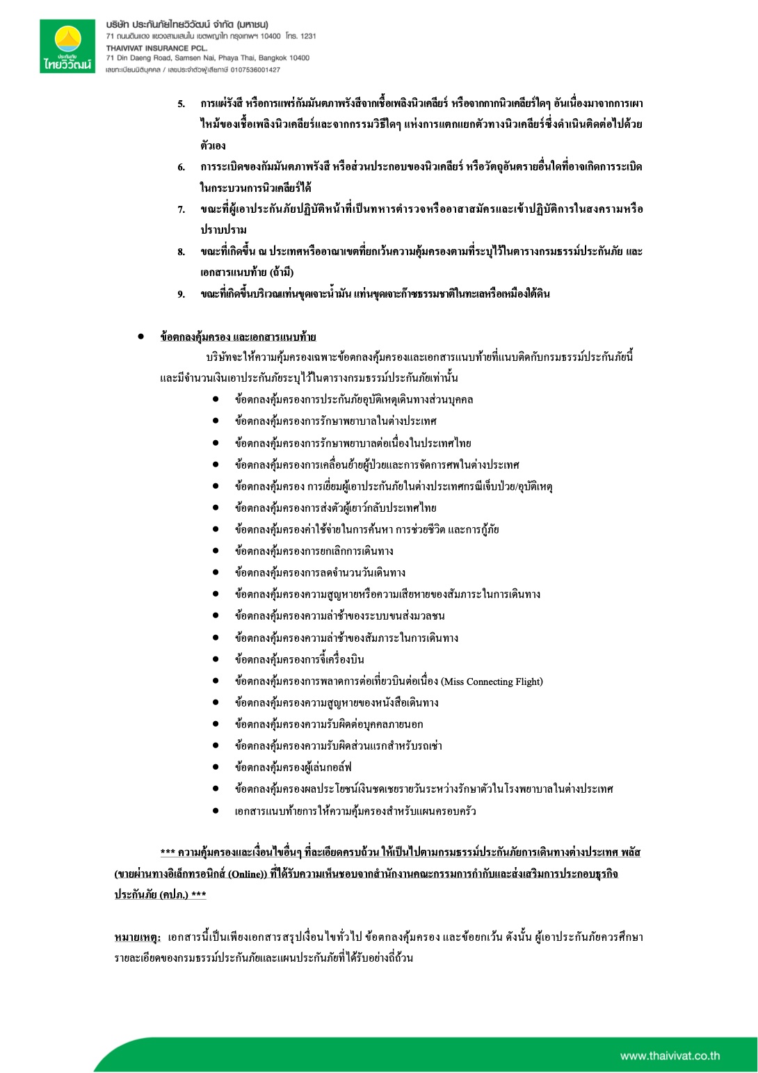 | 5. การยกเลิกการเดินทาง / Trip cancellation | 10,000 | 10,000 | 100,000 | 100,000 |